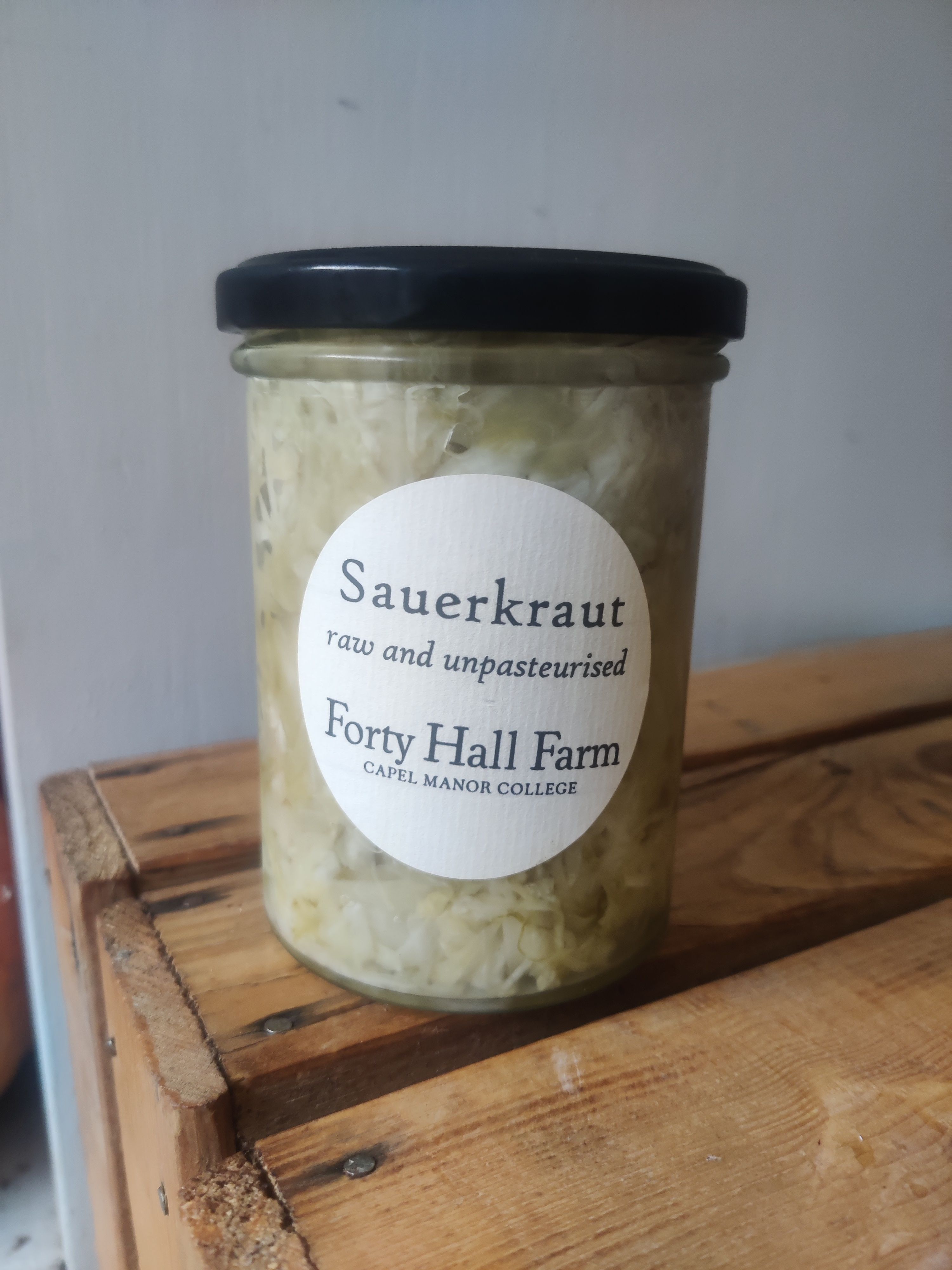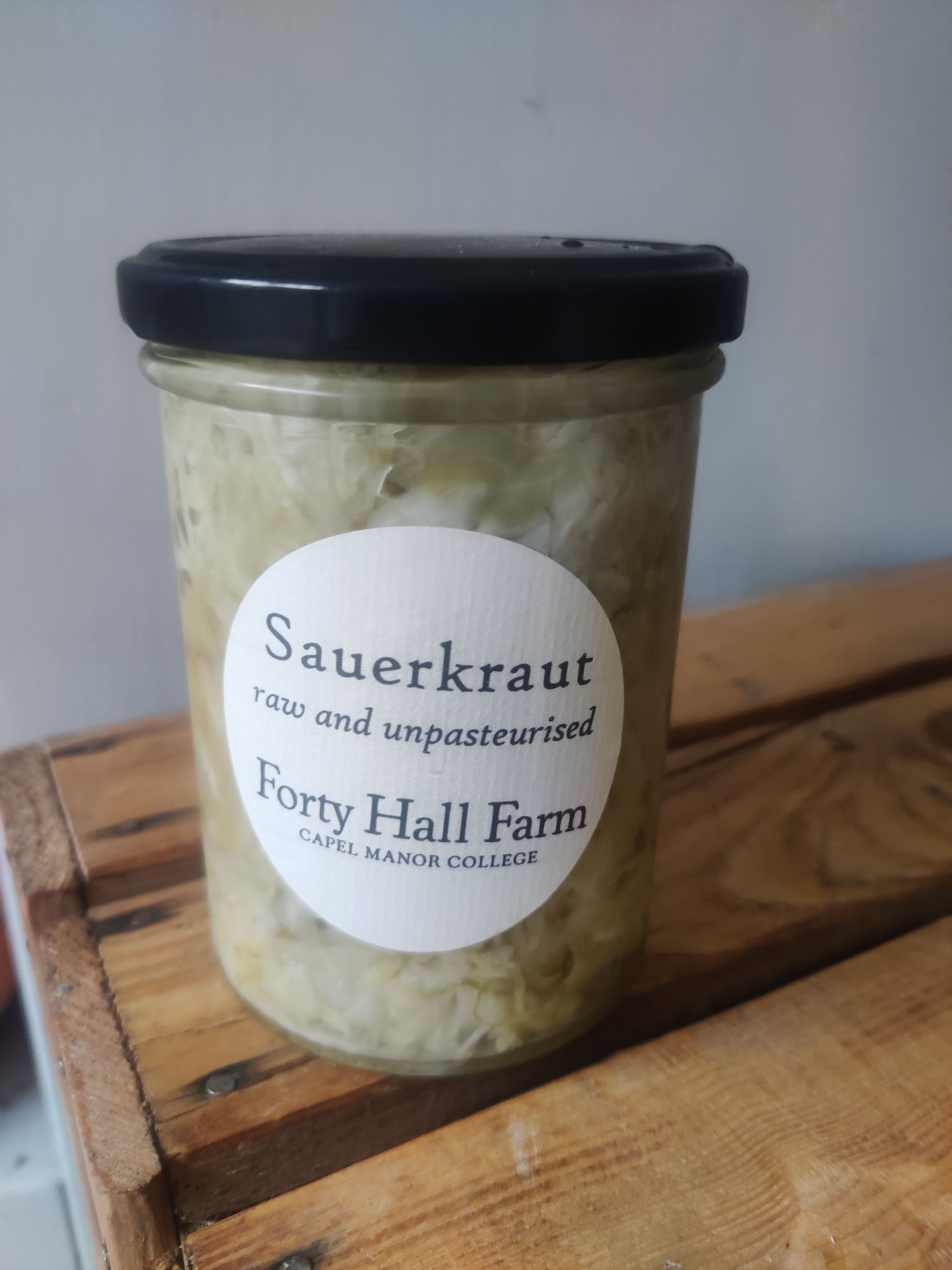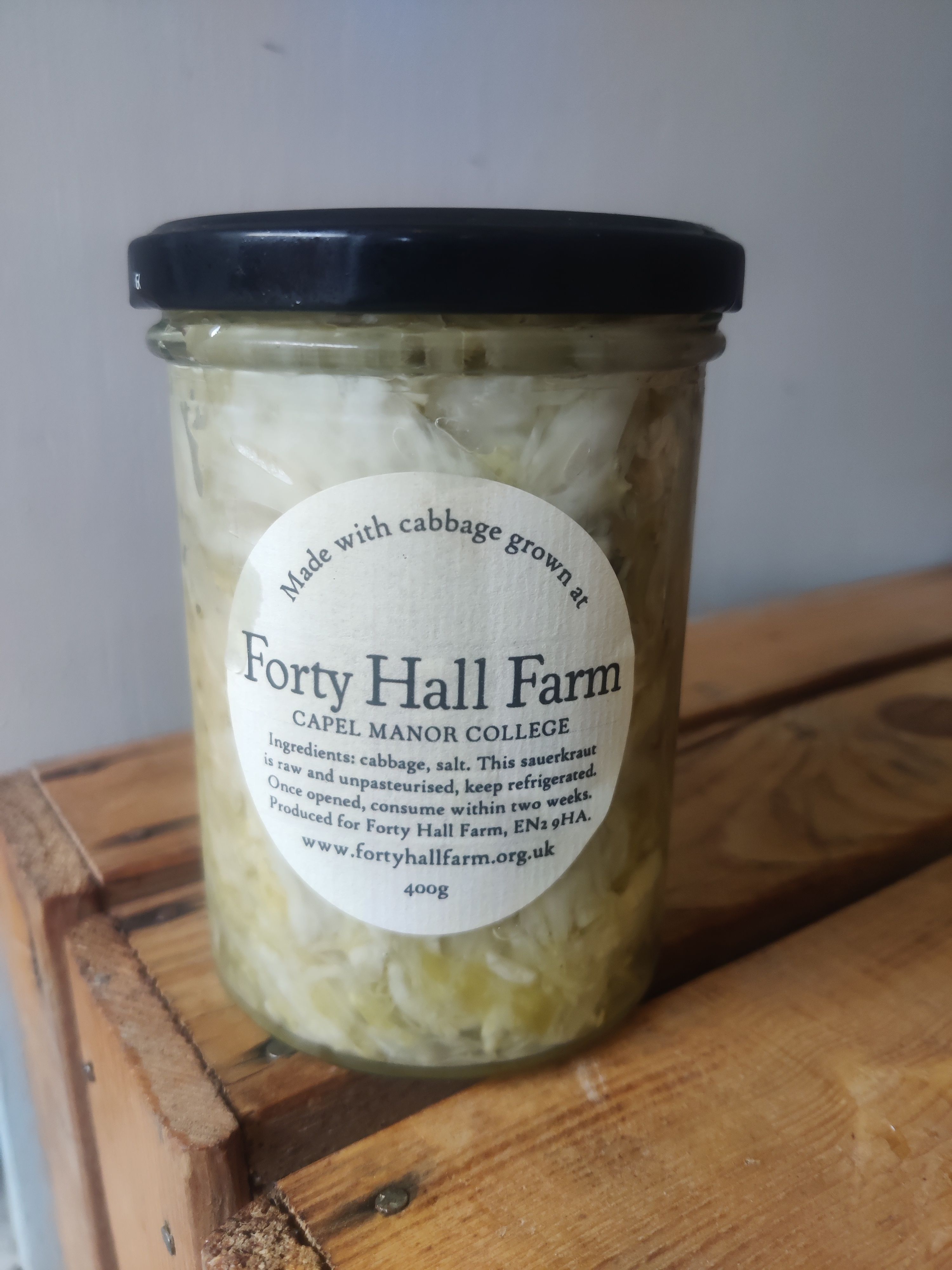 Sauerkraut made with certified organic cabbage, grown at Forty Hall Farm. 400g